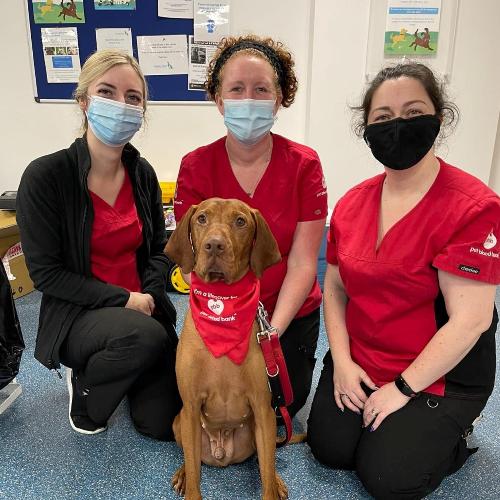 Lorna and her team at the practice are very much involved in donor recruitment and are always spreading the word to their clients, as well as getting all the eligible staff dogs to sign up. They have also encouraged a lot of the students they have on placement at the practice to sign up to volunteer at their sessions, and we thank them for being so proactive.