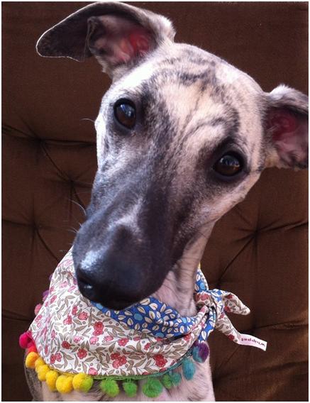 Poppet's Mum made scarves for dogs and donated the proceeds to Lurcher SOS Rescue.