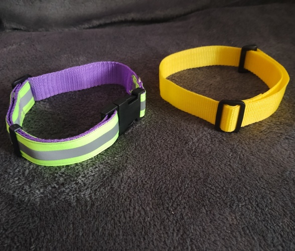 The yellow collar is beautifully simple, lightweight yet sturdy and ideal as a house collar. It slips easily over my beautiful long snout but then very simply adjusts so that it doesn't slip straight off again.